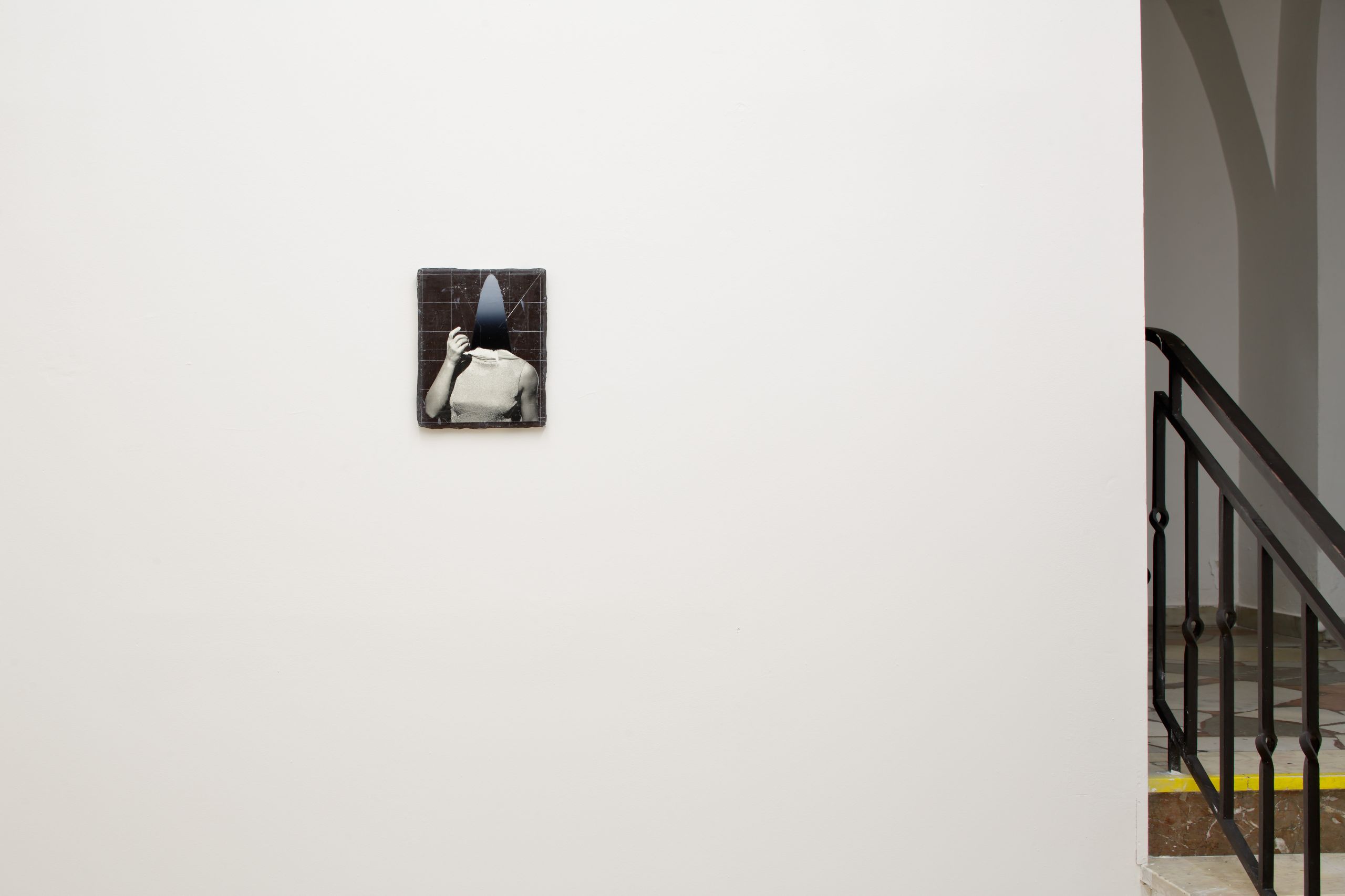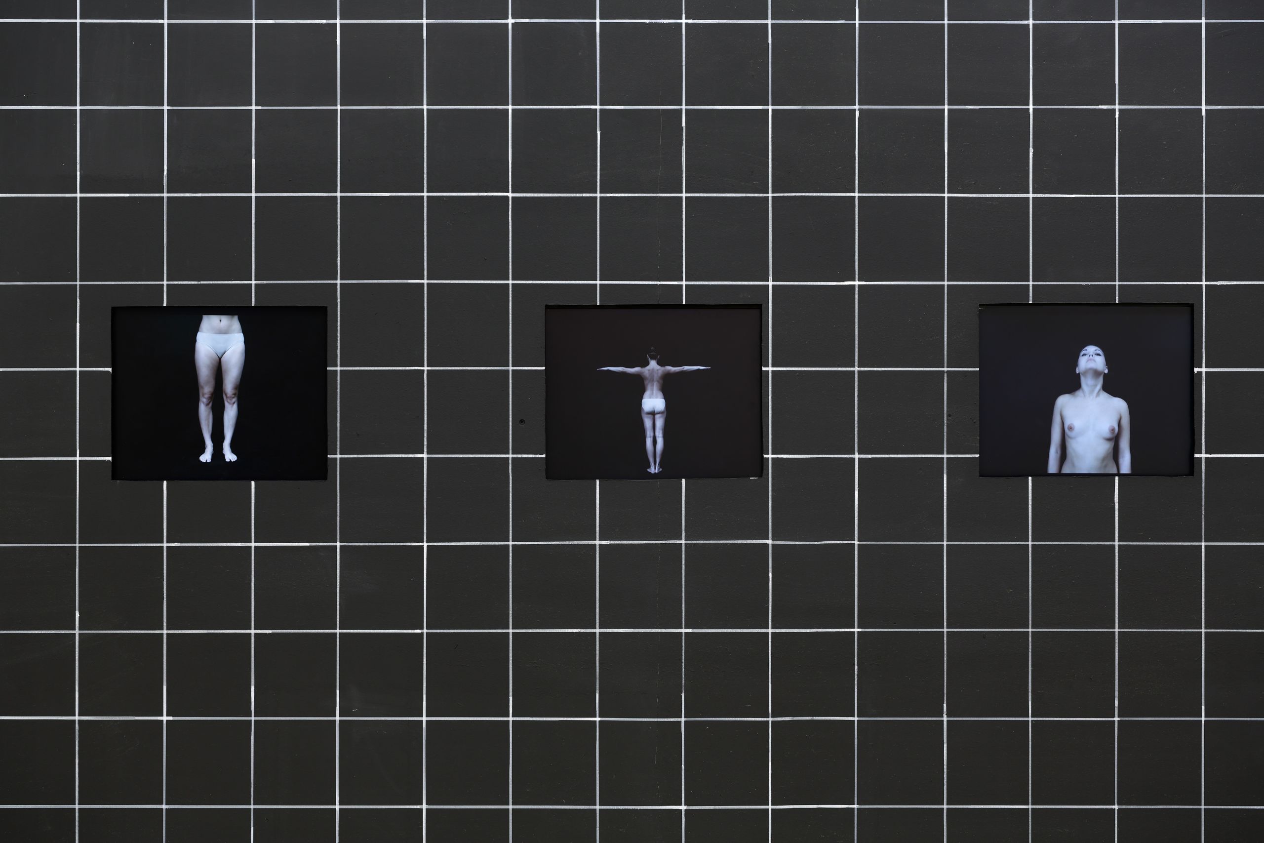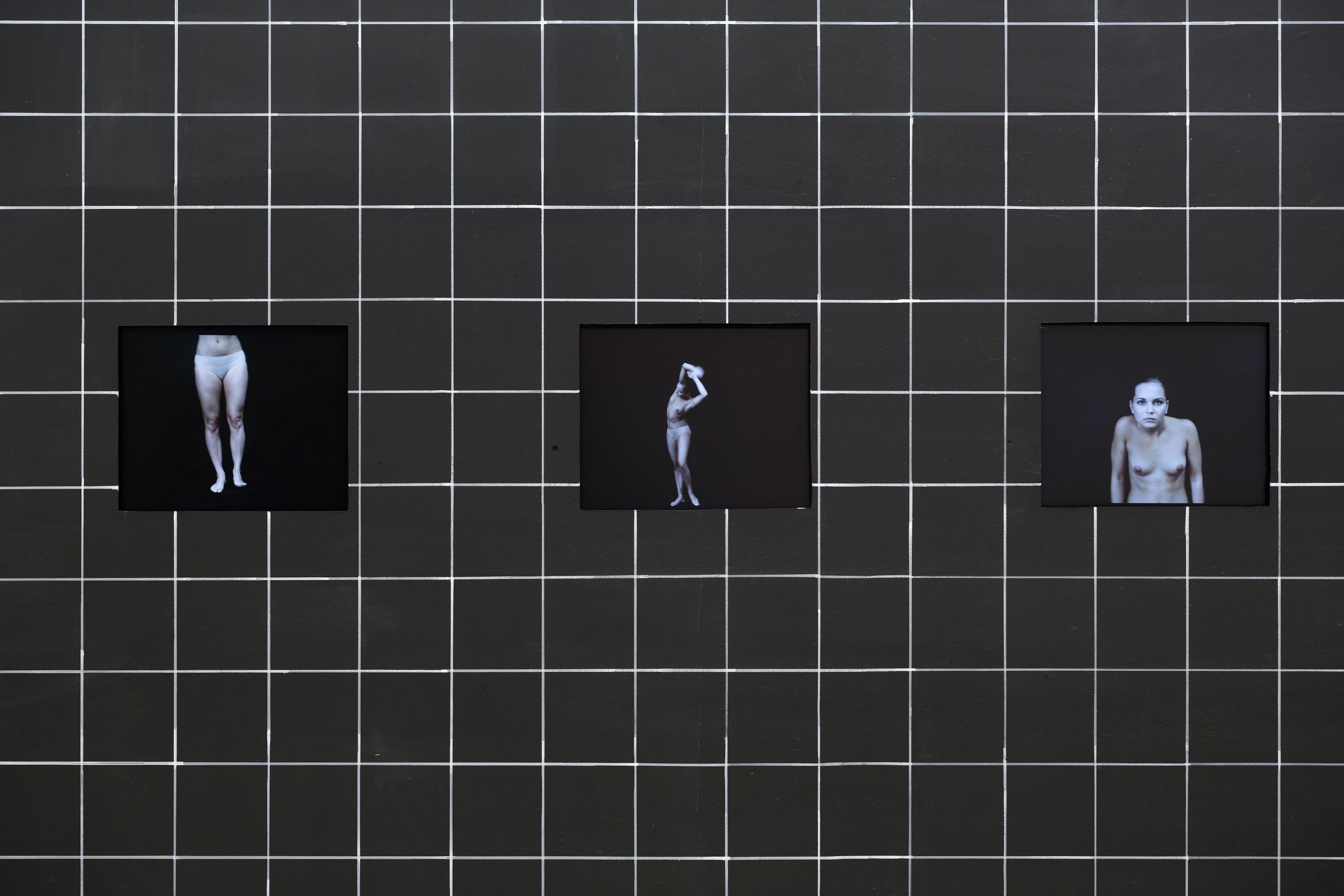 The choreography is rooted in the artist’s collages, which are interpreted and transformed into another expressive language. The exhibition presents a visually striking and expressively refined collage that sits at the intersection of installation, theatre, cabaret, film, and photography. Central to the installation is a network that acts as a grid, framing the entire composition.