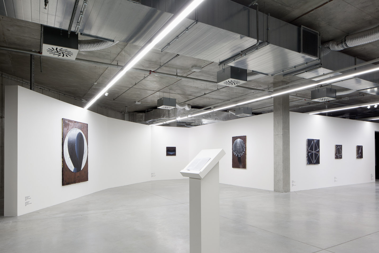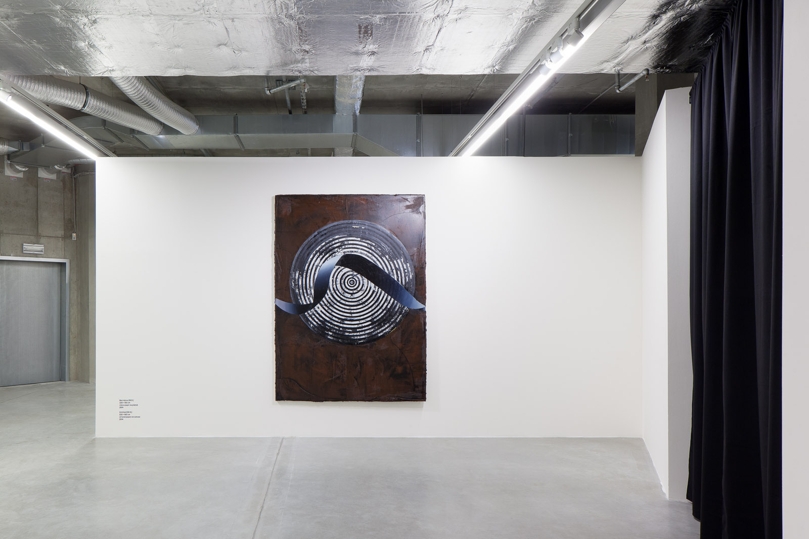 Supporting himself by the laws of the painting trade and fascinated by the history of art as an original cultural discipline, he finds his own, unique way which returns urgency and substance to abstraction, changes shapes into signs and emblems. Scrutiny, usually attracted by the central composition, suddenly dissolves in the body of the painting, which blurs the clarity of the division into background and foreground, colour changes, space plans… Playing with an illusion of views opening onto the space inside the painting and beyond the painting while simultaneously clearly sticking to the idea that a painted picture is a thing and through painting the surface in Houdek’s works reconciles the Baroque tradition with that of the classic avant-garde. A view through to the dome of a Baroque church contaminated with Malevich’s black square.